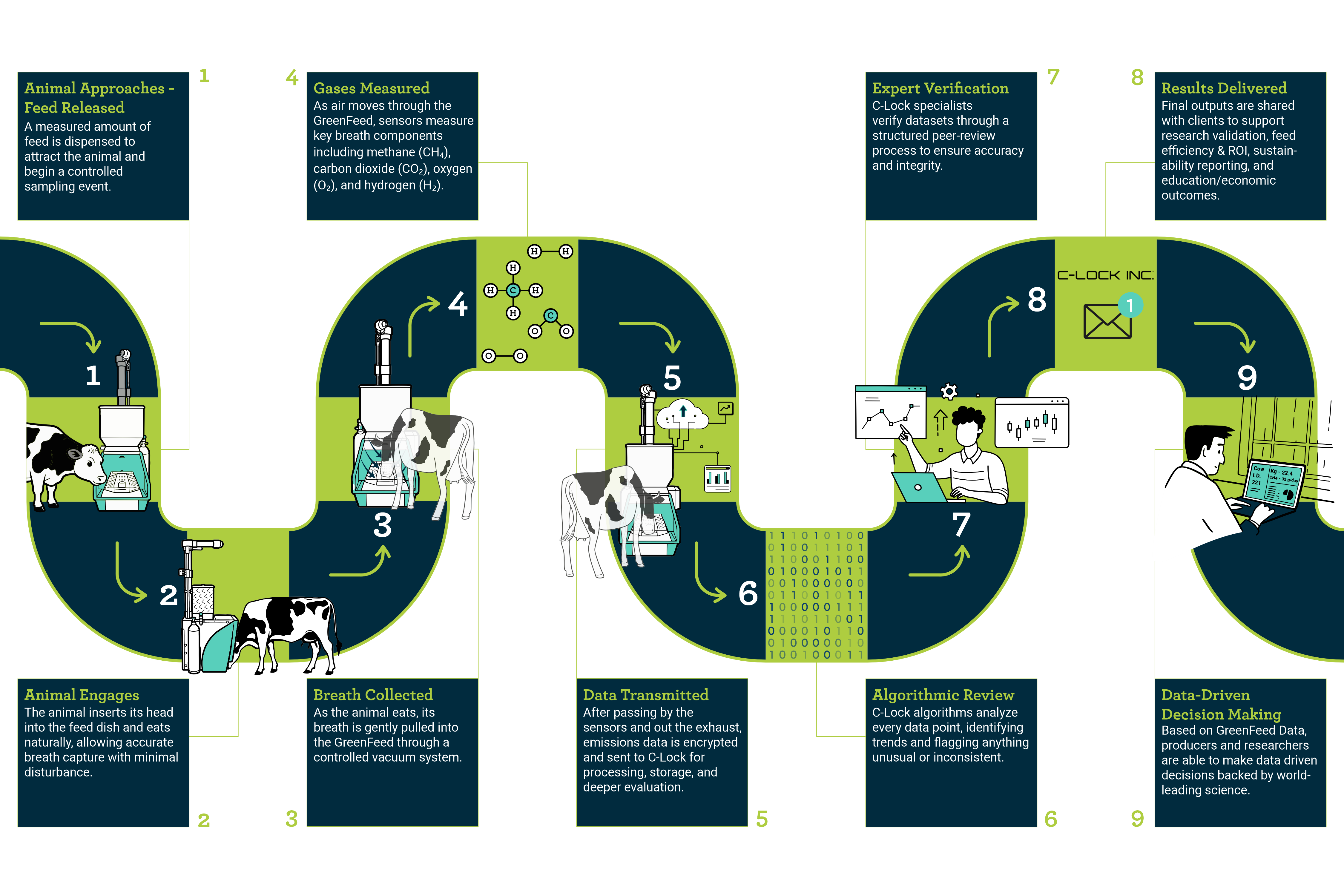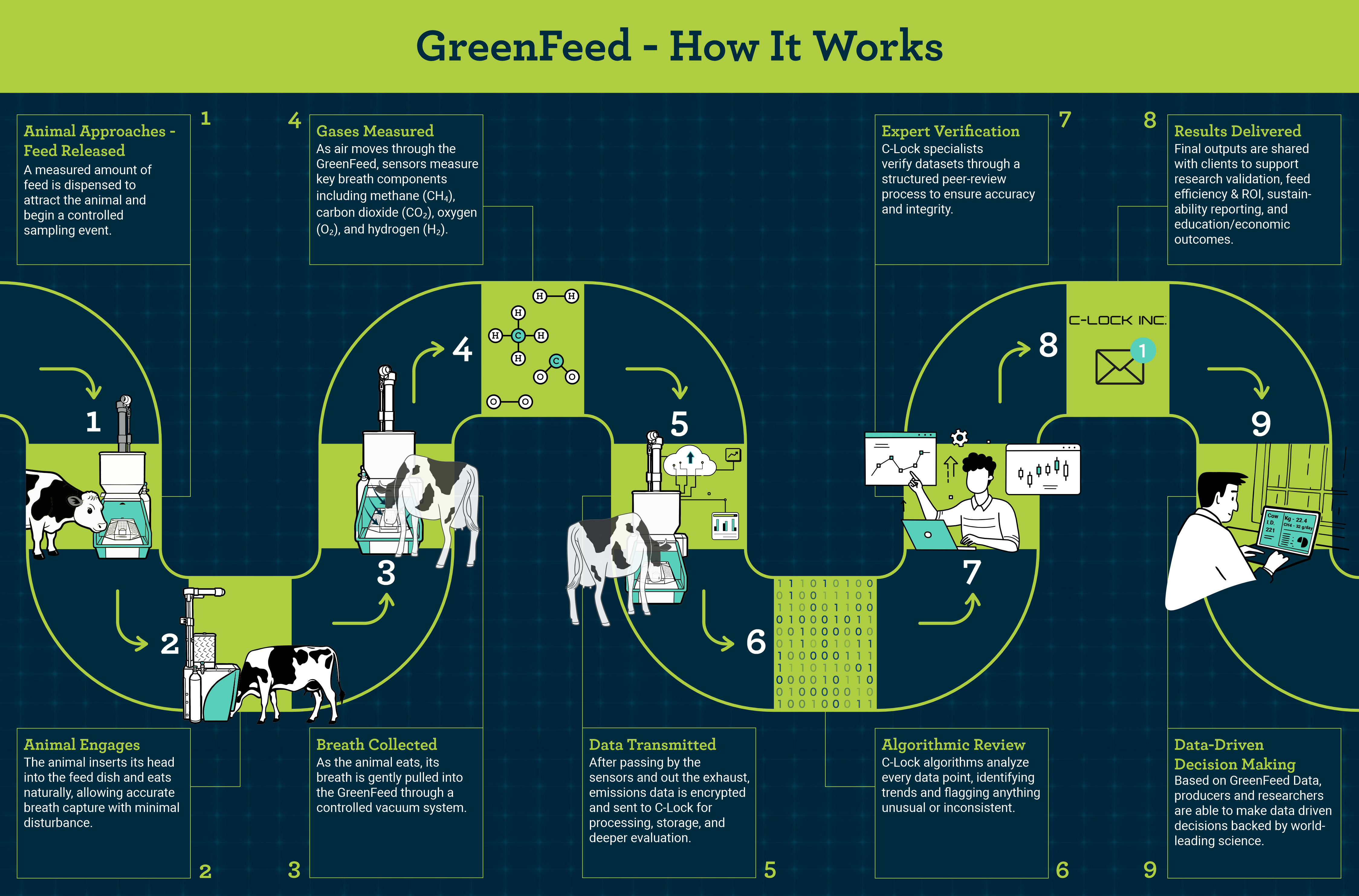 C-Lock’s GreenFeed® system accurately measures individual animal greenhouse gas emissions by capturing and analyzing breath samples as animals voluntarily consume a small feed reward.